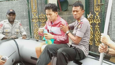 Derasnya banjir pun tak menyurutkan semangat sejumlah prajurit itu untuk mendorong perahu kareta secara manual. “Terima kasih, Pak, sudah tolong kami. Anak saya sakit jantung dan paru-paru,” kata seorang wanita yang ikut duduk di perahu karet itu.