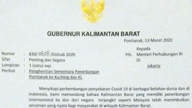 "Kami memandang bahwa Kalimantan Barat yang memiliki penerbangan internasional ke dan dari negara terjangkit seperti Malaysia telah menimbulkan ancaman yang nyata bagi masyarakat di wilayah Kalimantan Barat," tulis Gubernur Kalbar Sutarmidji dalam surat tersebut pada Jumat, 13 Maret 2020.