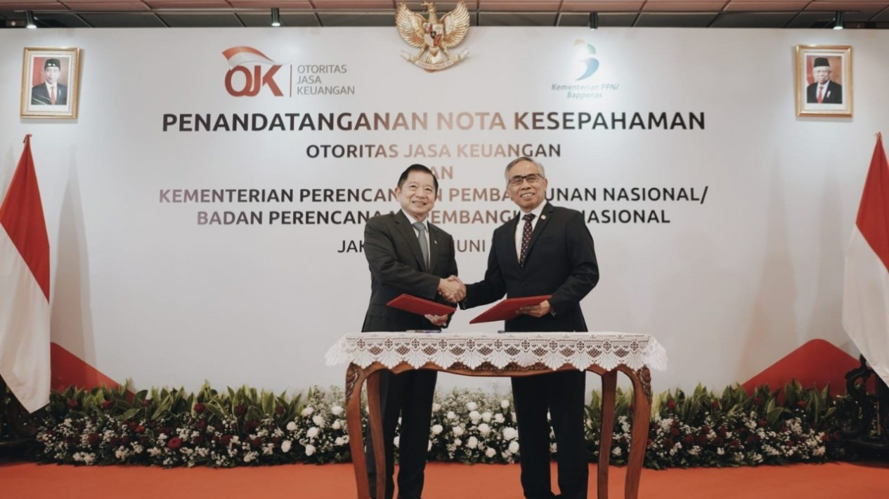 VIVA – Kementerian Perencanaan Pembangunan Nasional (PPN)/Bappenas dan Otoritas Jasa Keuangan (OJK), menandatangani Nota Kesepahaman Sinergi Kebijakan Perencanaan Pembangunan Nasional dengan Kebijakan Sektor Jasa Keuangan untuk Mendukung Pemulihan dan Transformasi Ekonomi Nasional.