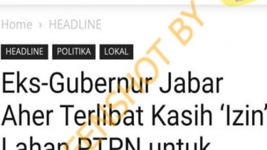 VIVA – Sebuah akun media sosial Facebook bernama Minx Minx menyebarkan sebuah artikel dari Media Sintesa. Dalam judulnya, artikel ini seolah-olah mengklaim bahwa eks Gubernur Jabar saat itu, Ahmad Heryawan, memberikan izin terkait penggunaan lahan PTPN oleh Markas FPI Megamendung.