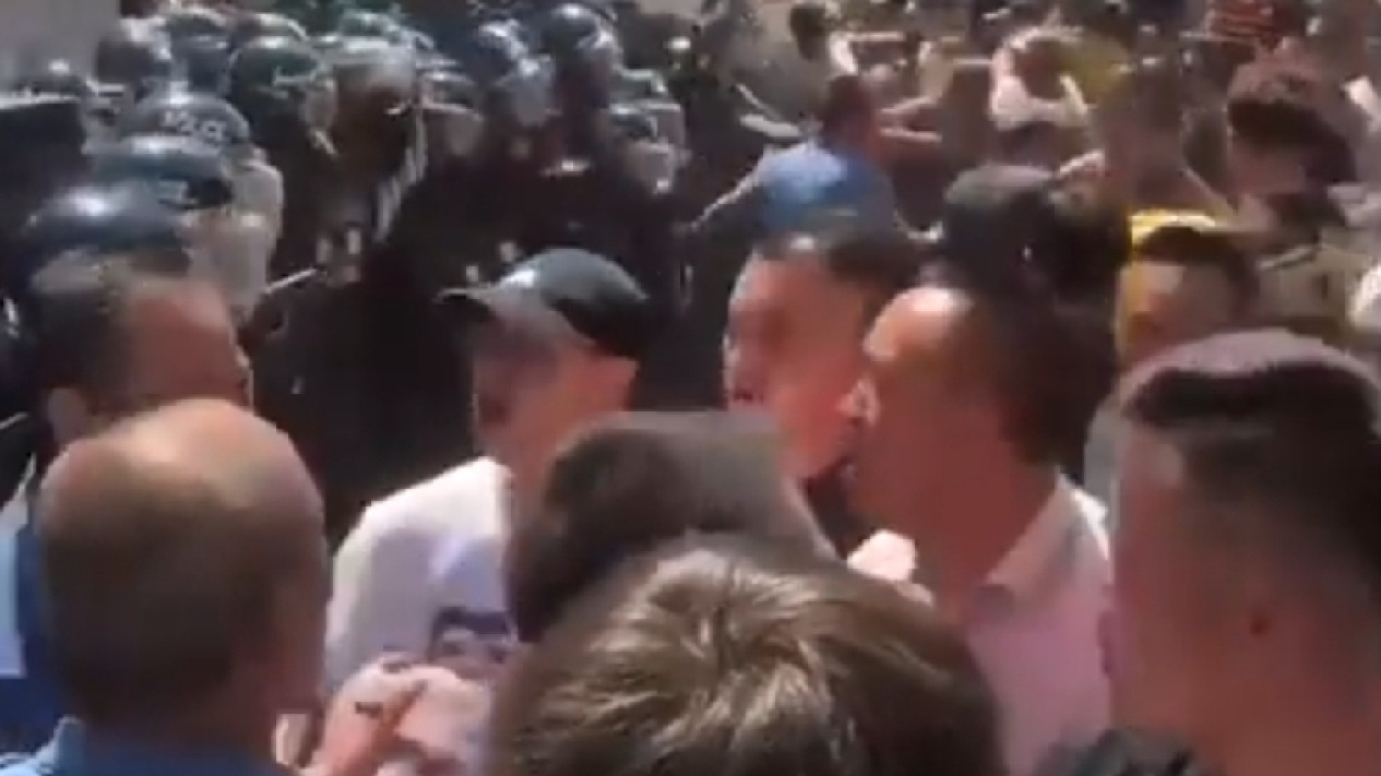 Tindakan tersebut lantas memicu demonstrasi. Video protes hari Sabtu, menunjukkan barisan polisi menghalangi demonstran untuk masuk ke masjid, dan sekelompok pria mencoba memaksa masuk dengan melemparkan batu ke arah polisi.Â