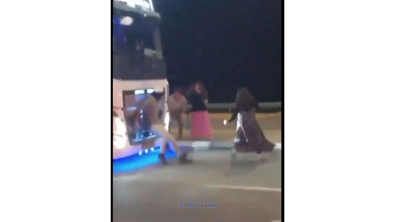 Terlihat truk berwarna putih diadang oleh warga Israel setempat di sebuah jalan raya. Namun alih-alih berhenti, sopir angkutan besar itu justru tancap gas hingga membuat salah seorang pemukim terjatuh. Beruntung tidak ada korban jika dalam momen tersebut.