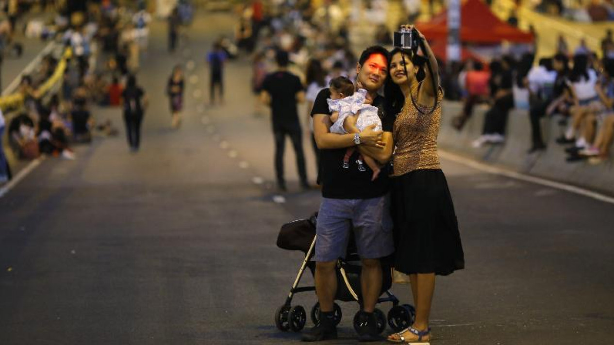 Walau jumlah pemrotes jauh berkurang, wartawan BBC John Sudworth, menyebut kelompok utama yang memotori aksi protes terus bertahan. Ratusan pemrotes terlihat tidur di jalan dekat kantor pemerintah, Senin malam, 6 Oktober 2014.