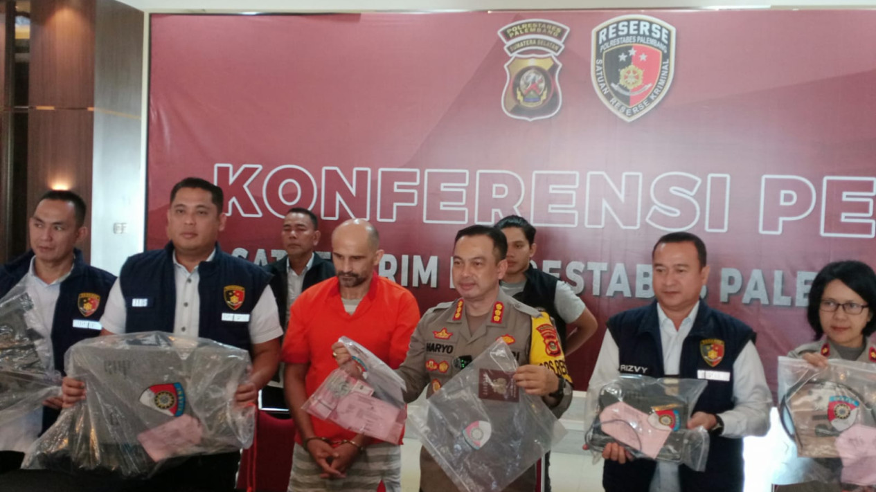 Kapolrestabes Palembang, Kombes Pol Harryo Sugihhartono, didampingi Kasat Reskrim AKBP Haris Dinzah dan Kabag Bin Ops Ditreskrimum Polda Sumsel AKBP M Rizvy, membenarkan penangkapan terhadap tersangka Vladimir Kasarski.