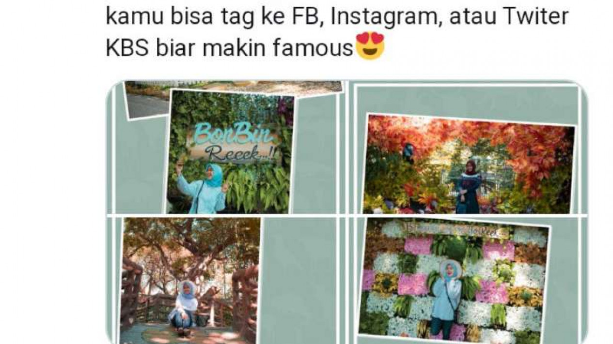 Foto diunggah dengan dilengkapi keterangan: “Pergi berwisata bersama keluarga, maupun teman, rasanya belum lengkap kalau tidak mengabadikan moment lewat video maupun foto. Nih..beberapa titik spot foto yang wajib kamu cobain. Kalau sudah foto di situ, kamu bisa tag ke FB, Instagram, atau Twitter KBS biar makin famous”.