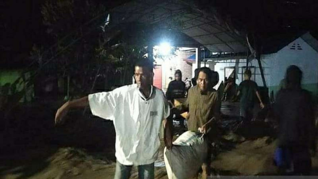 Hingga dini hari pemukiman penduduk masih terendam material lumpur yang terbawa banjir bandang dan warga masih bergotong royong membersihkan rumah yang terendah lumpur.