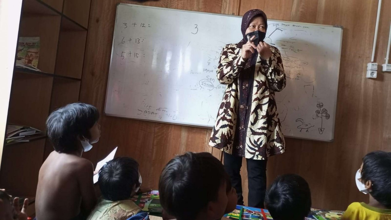 VIVA – Menteri Sosial, Tri Rismaharini, mendatangi permukiman Suku Anak Dalam (SAD) di Jambi dan dia langsung mengajari anak-anak SAD dengan menggunakan papan tulis.