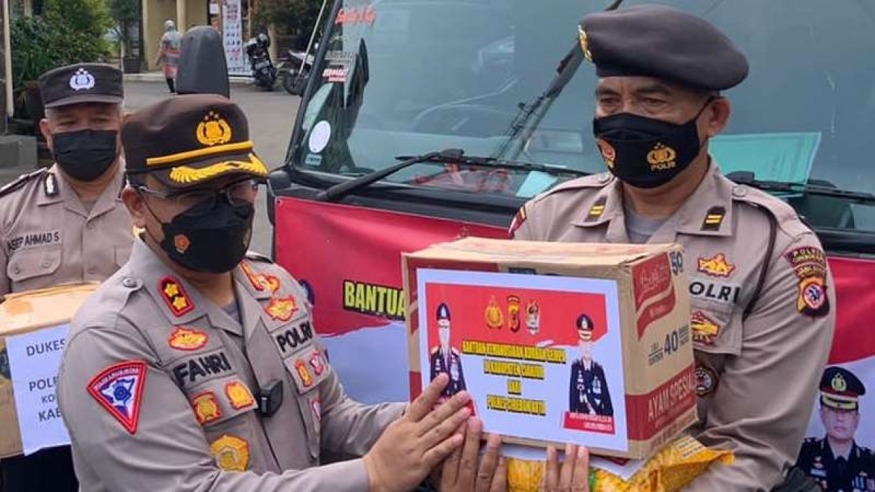 Kapolres Cirebon Kota AKBP Fahri Siregar mengatakan, bantuan sosial yang di berikan berupa Beras 1 Ton, mie instan 200 Dus,