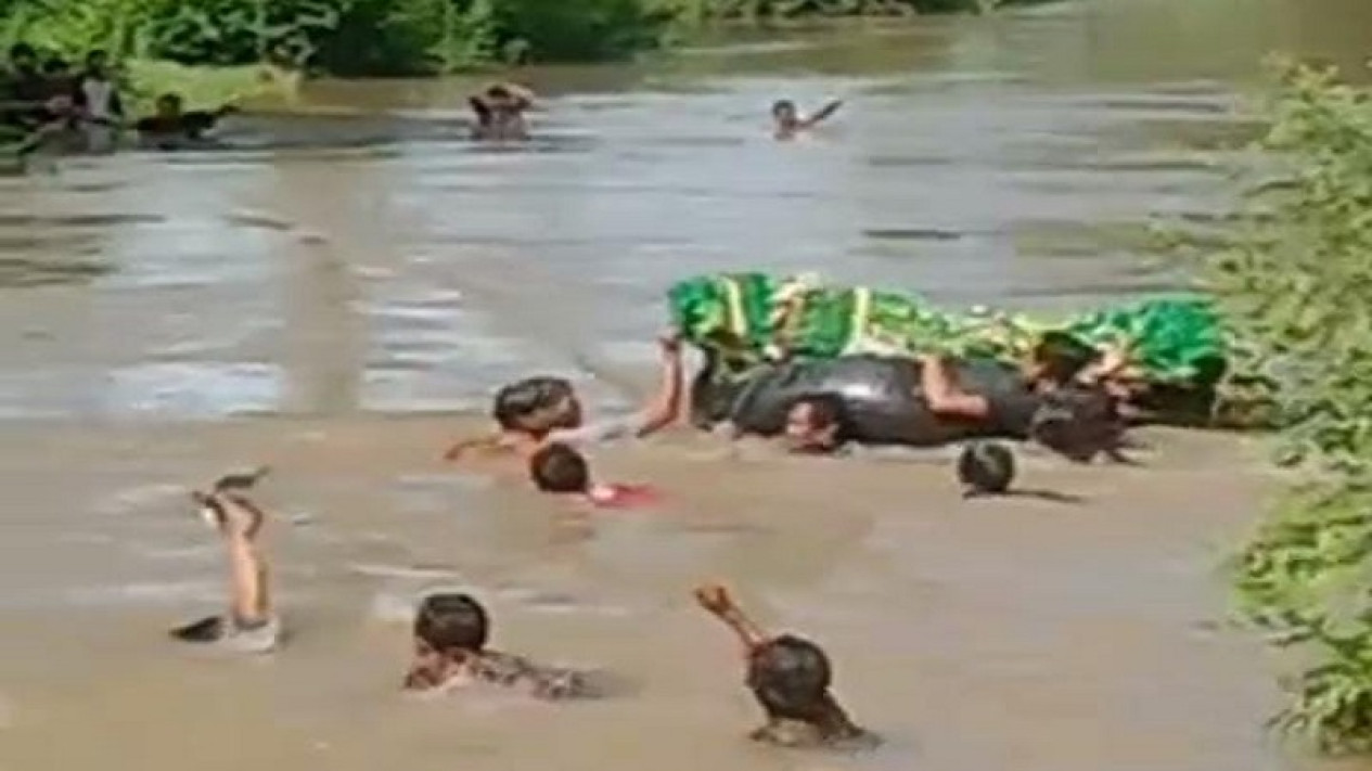 Pesisir Barat - Sejumlah warga di Pekon (desa) Pemerihan, Kecamatan Bengkunat, Kabupaten Pesisir Barat, Lampung, berenang menyeberangi sungai deras di wilayahnya sambil membawa jenazah untuk dibawa ke pemakaman viral di media sosial.Â