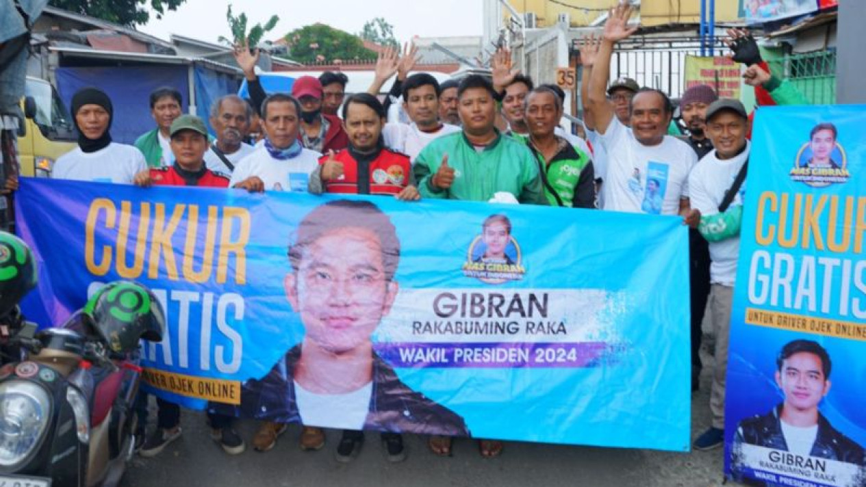 Jakarta - Barisan relawan pendukung Gibran Rakabuming Raka yang tergabung dalam Relawan Mas Gibran kembali bergerak dengan mendatangi wilayah Cengkareng, Jakarta Barat, Minggu, 9 Juni 2024. Agenda mereka menemui driver ojek online atau ojol.