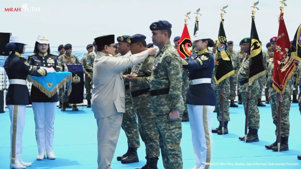 Di Atas KRI, Prabowo Sematkan Tanda Kehormatan ke Prajurit-Satuan TNI Berprestasi
