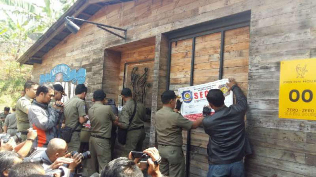 VIVA.co.id – Kafe Erginn di Kawasan Dago Resort disegel Satuan Polisi Pamong Praja (Satpol PP) Kabupaten Bandung, Jawa Barat. Penyegelan dilakukan lantaran banyaknya keluhan masyarakat soal peredaran minuman keras dan pelanggan yang meresahkan.