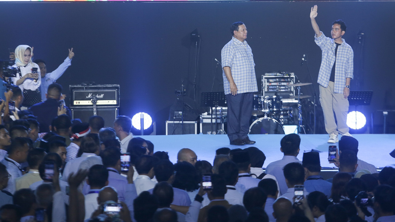 Jakarta - Barisan relawan pendukung Prabowo Subianto-Gibran Rakabuming Raka yang tergabung dalam Massa Prabowo menggelar syukuran atas kemenangan duet nomor urut 02 itu memenangi Pilpres 2024. Apalagi, pasangan Prabowo-Gibran menang dalam satu putaran.