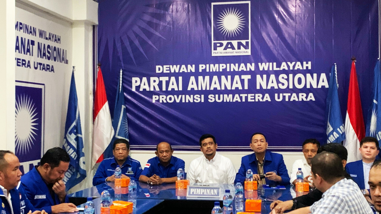 Penyerahan surat dukungan kepada Bobby Nasution di Pilgub Sumut, di Kantor DPW PAN Sumut, Kota Medan.(B.S.Putra/VIVA)