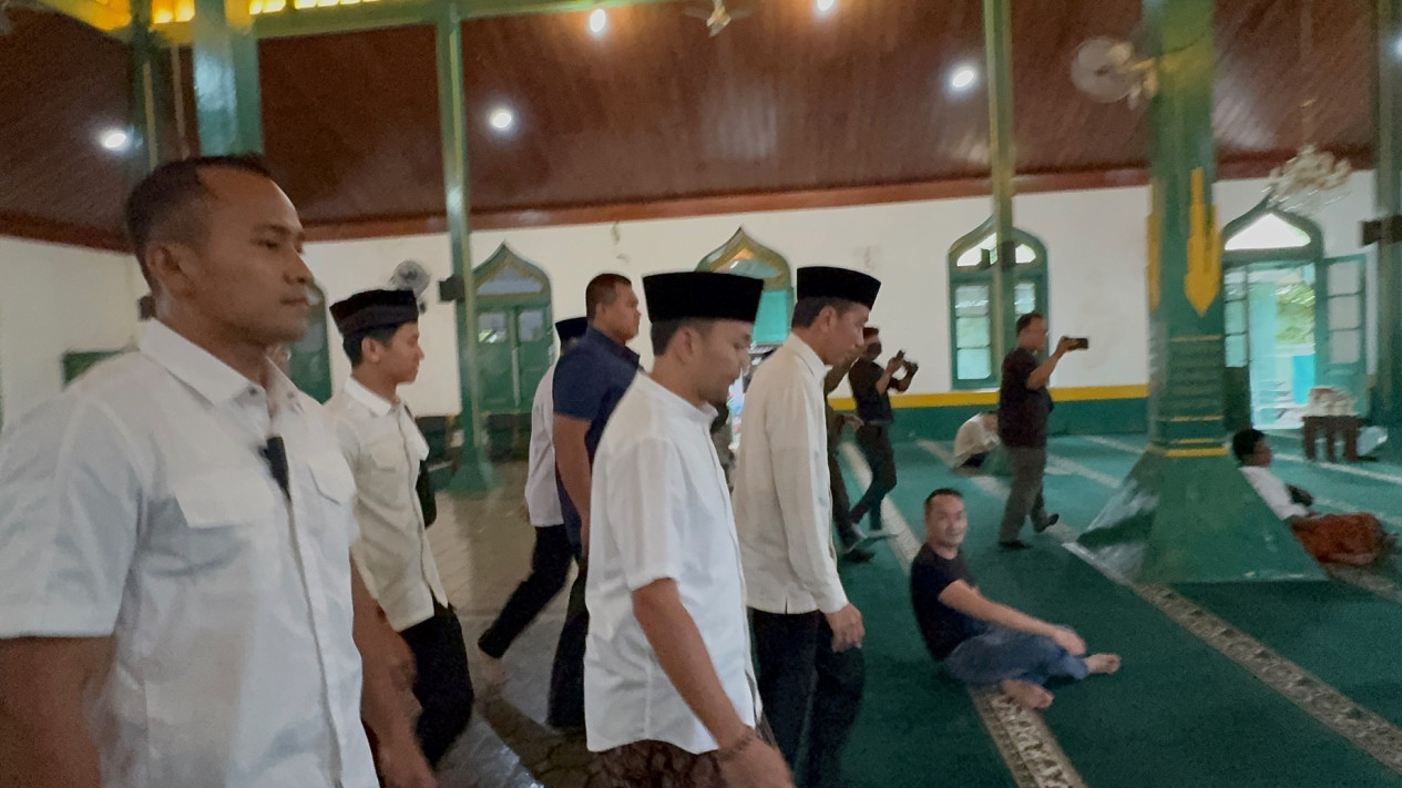 Kedatangan Jokowi disambut oleh calon Wali Kota Solo yang diusung Koalisi Indonesia Maju (KIM) Plus, Respati Ardi. Setelah itu, Jokowi dan Respati langsung berjalan masuk ke dalam masjid dan melakanakan salat Jumat di barisan saf paling depan.