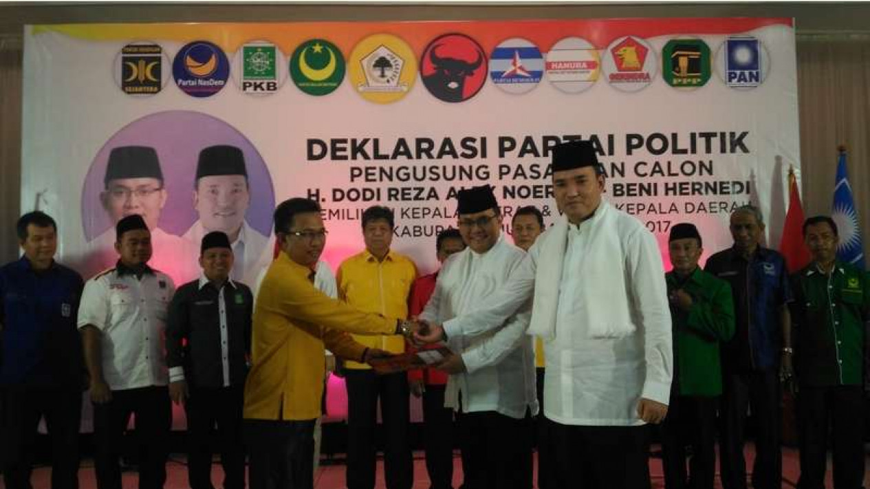 VIVA.co.id – Dodi Reza, putra dari Gubernur Sumatera Selatan Alex Noerdin memboyong 11 partai pendukung untuk maju dalam Pemilihan Kepala Daerah serentak 2017 di Kabupaten . Di pilkada serentak pada 15 Februari 2017 itu, Dodi menggandeng Beni Hernedi yang kini menjadi pelaksana tugas Bupati .