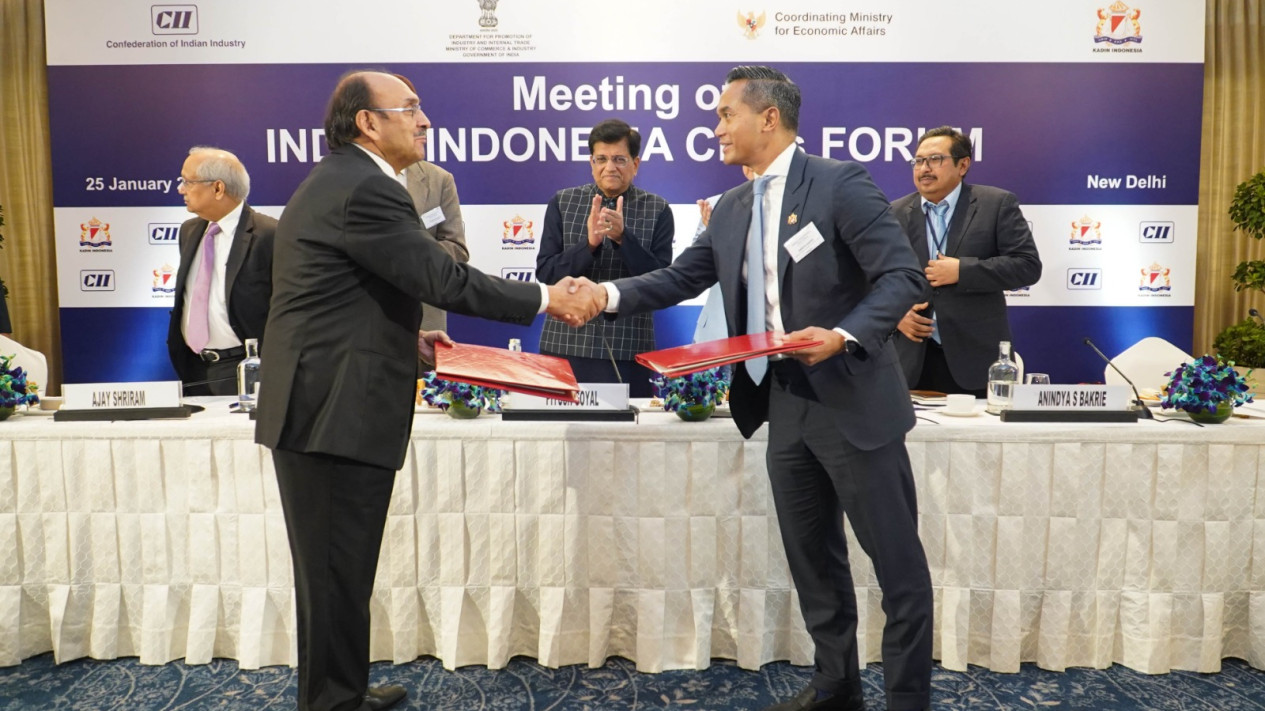Adapun penandatanganan bersama antar-kedua negara dalam CEO Forum tersebut dilakukan oleh Ketua Umum Kadin Indonesia Anindya Novyan Bakrie dan Ketua CII Ajay Shriram.