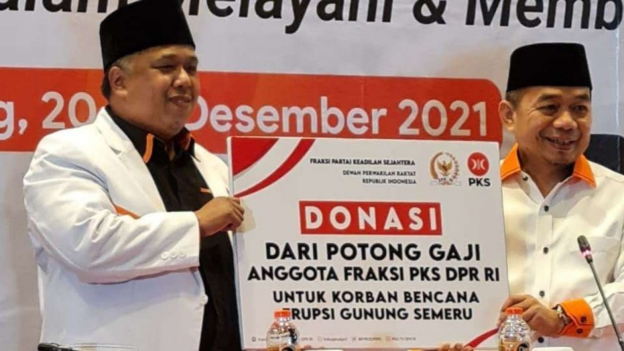 Fraksi PKS serahkan bantuan dari hasil potong gaji anggota di DPR.