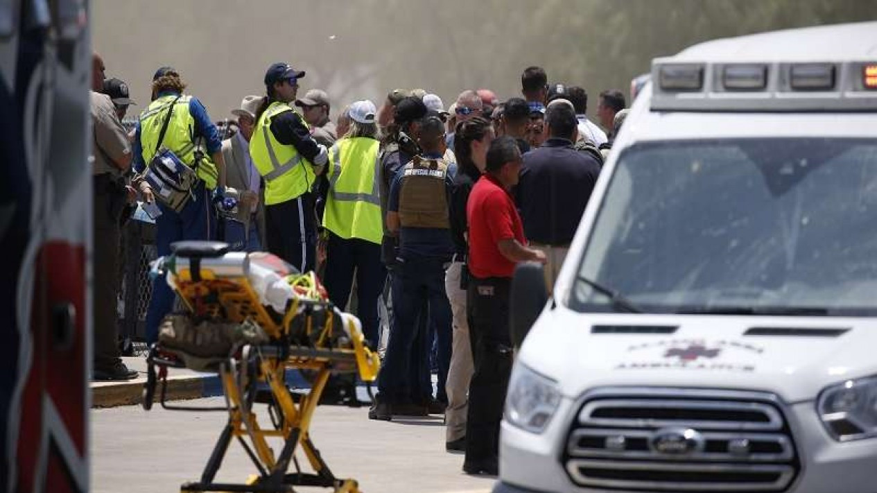 Ambulance berada di dekat sekolah dasar Robb pasca penembakan di Uvalde, Texas