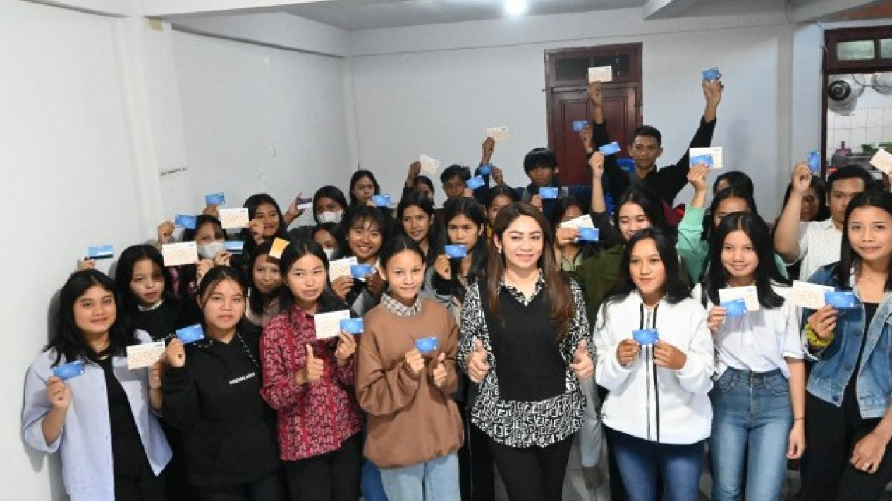 Anggota Komisi X DPR RI, Eva Stevany Rataba foto bersama penerima KIP