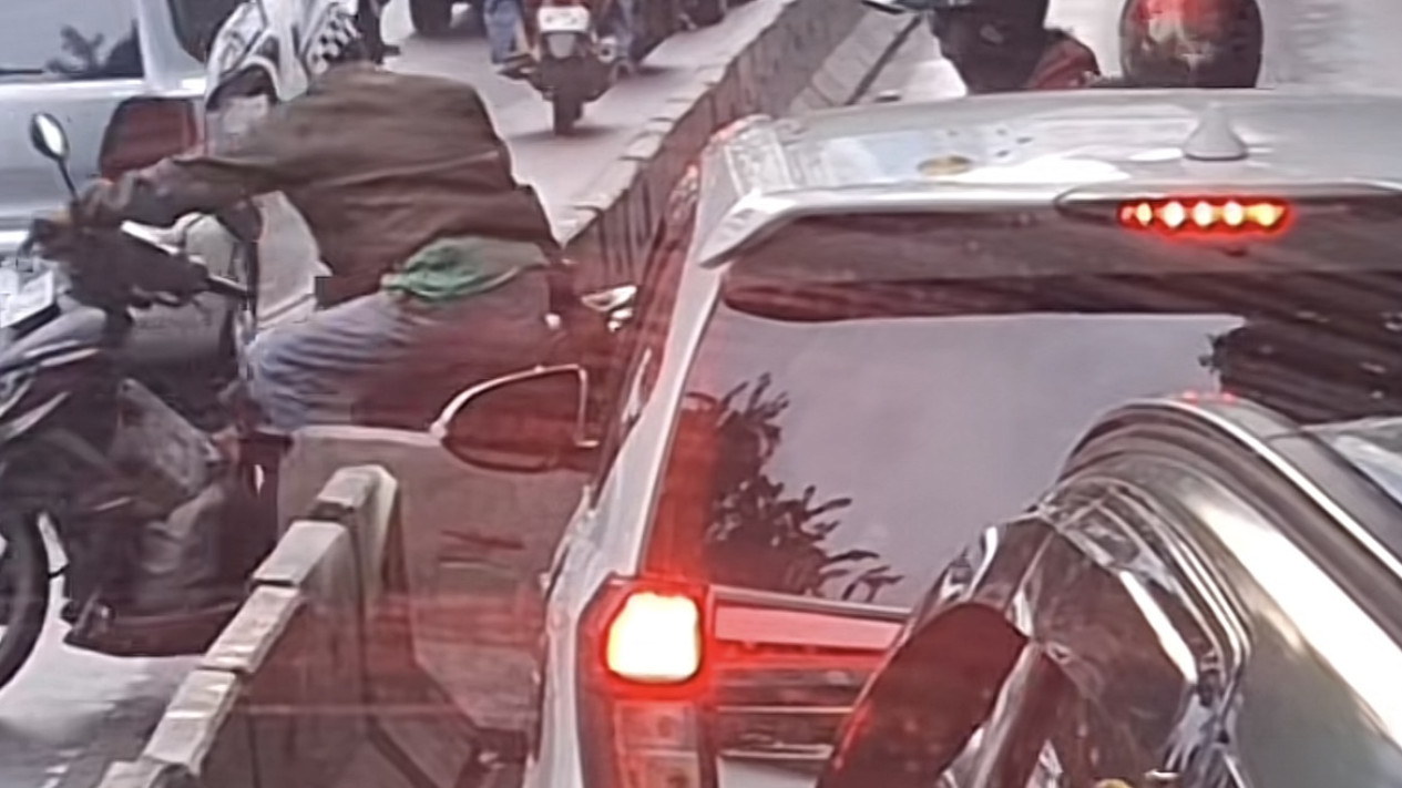 Pemotor nekat jebol pembatas jalur Transjakarta