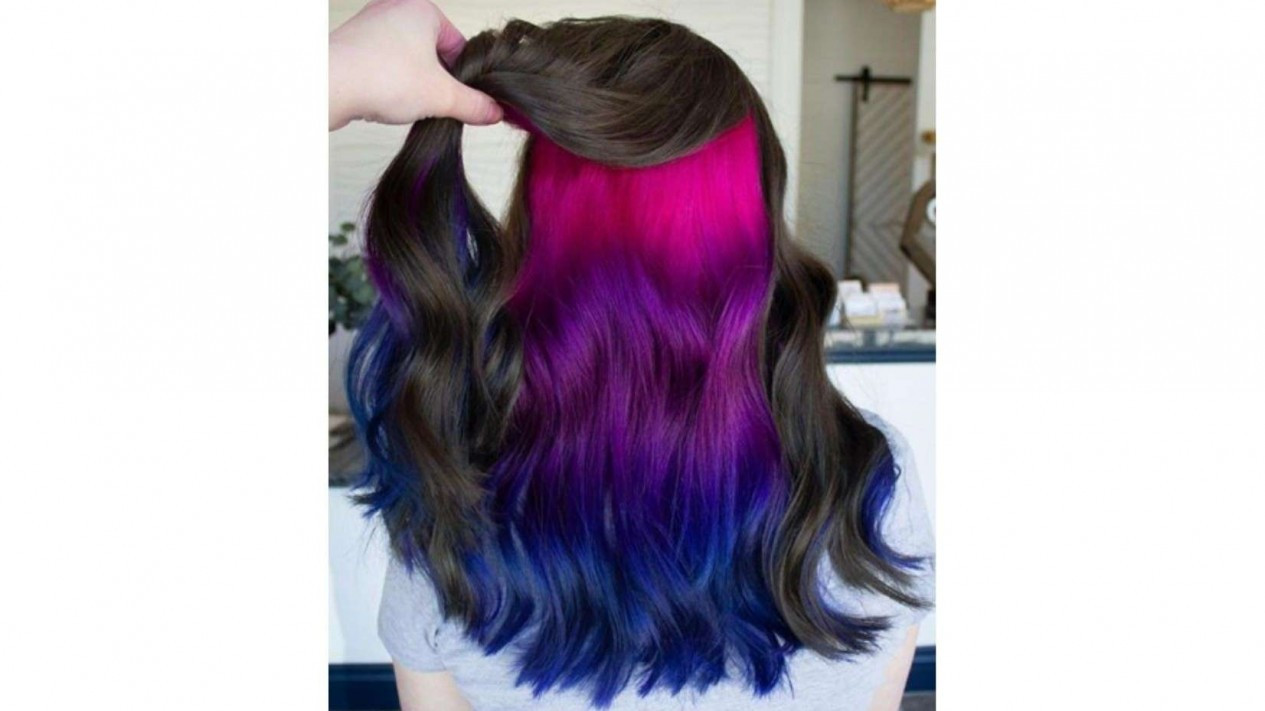 Bagian luar rambut ini adalah warna asli rambut kita. Sedangkan bagian dalam rambut didominasi oleh warna-warna yang kontras, seperti pink, ungu, hijau, biru elektrik, atau ash grey.Â