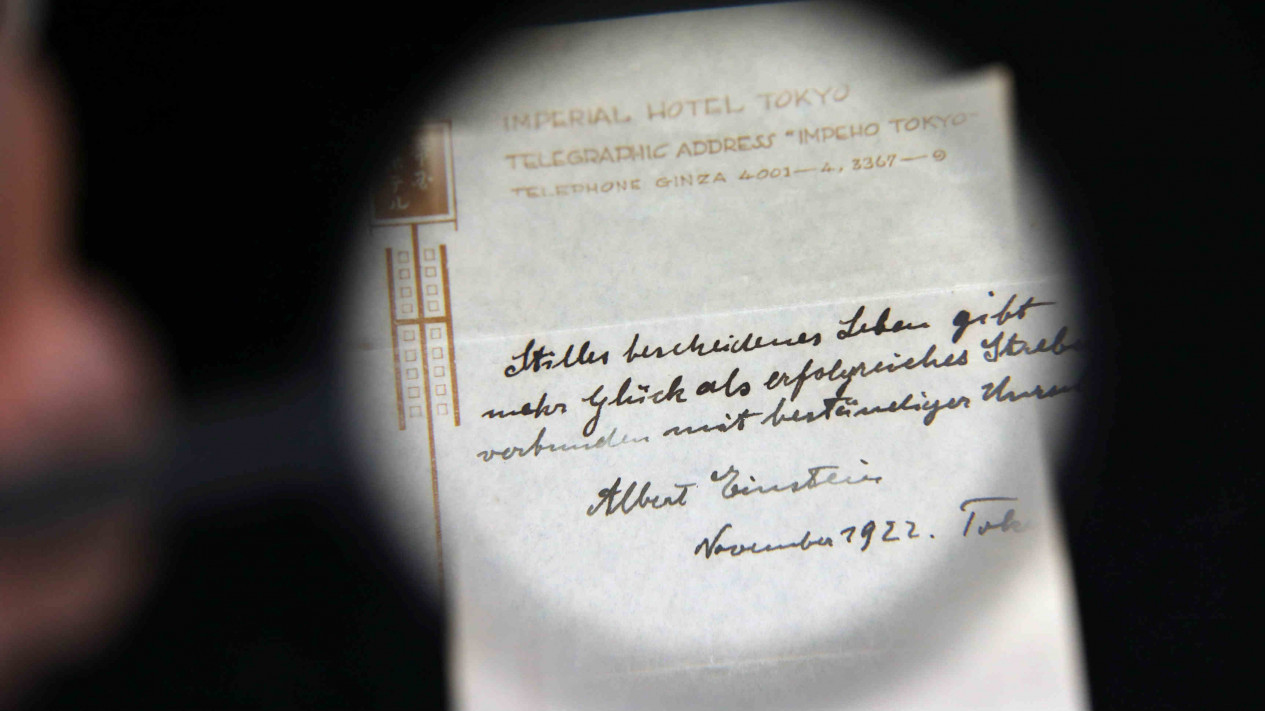 VIVA – Sebuah surat wasiat untuk hidup bahagia dari Albert Einstein, berhasil terjual dengan harga Rp18 miliar di rumah pelelangan di Yerusalem. Surat itu ialah tulisan yang diberikan oleh Einstein ke petugas hotel di Tokyo, saat dirinya kehabisan uang tunai.
