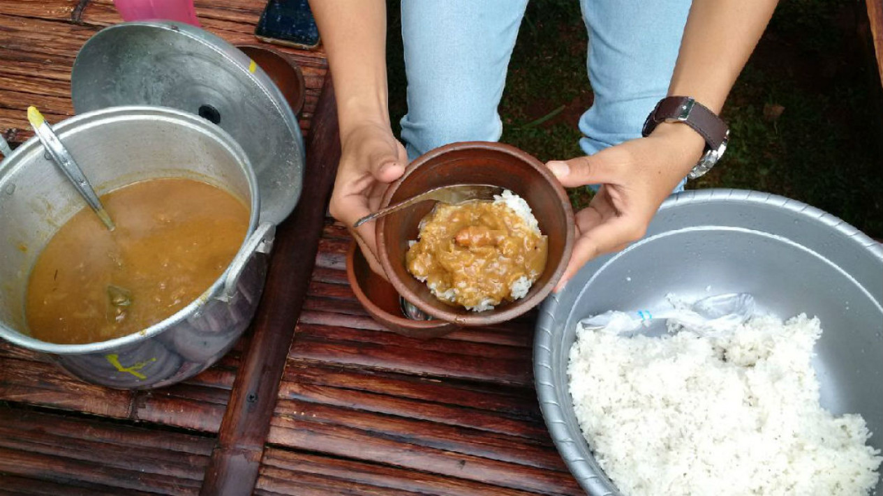 Dari teksturnya, olahan bubur ketan durian ini terlihat biasa. Fery hanya menyiapkan dua wadah besar yang berisi olahan santan dan gula yang telah dimasak dengan campuran durian. Lalu ketan yang dimasak dengan santan di sebuah wadah sederhana.