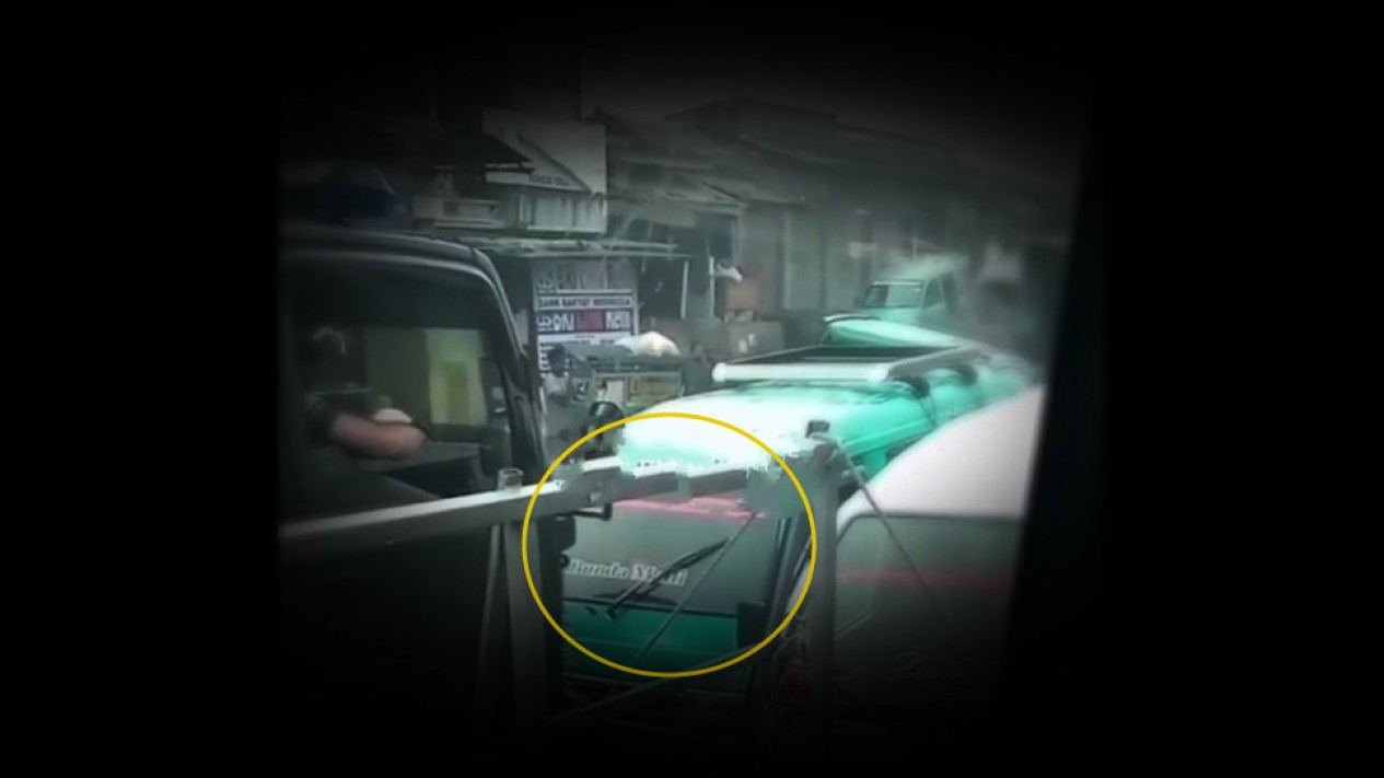 Terlihat sopir angkot berusaha masuk ke jalur kiri, tapi susah. Karena kendaraan padat. Akhirnya, angkot itu terlihat berusaha untuk mundur. Dan prajurit TNI yang mengemudikan truk terus mendesak maju ke arah angkot.