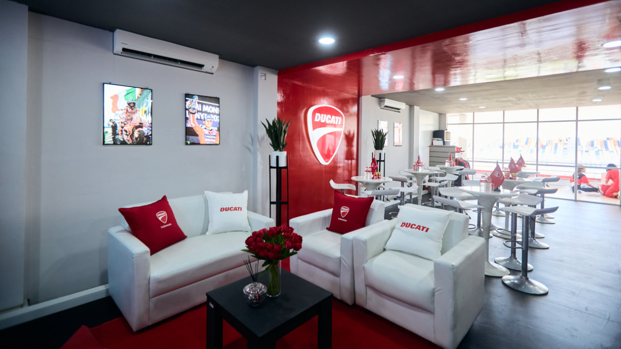 Tahun ini, VIP Royal Box Ducati Indonesia tampil istimewa dengan konsep "Casa Ducati." Bertempat di box nomor 44, yang terletak di atas garasi pembalap MotoGP, ruang ini didesain ulang dengan tema yang mencerminkan identitas pabrikan Borgo Panigale.