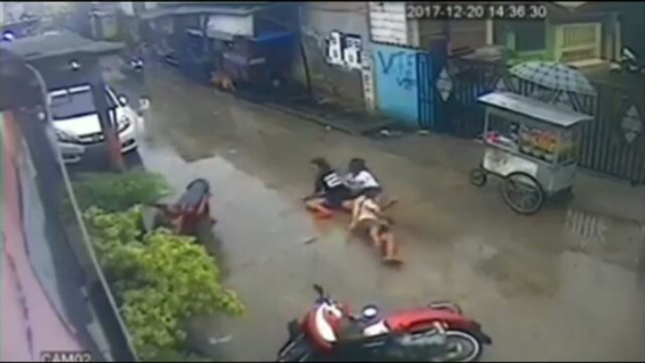 Hal itu terlihat dari bagaimana ia tidak mengantisipasi adanya tikungan dan kondisi jalan yang licin. Akhir dari kisah ini sudah bisa ditebak, ketiganya tersungkur ke aspal dalam kondisi menghadap ke bawah.