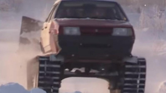 VIVA.co.id – Seorang pria asal Siberia berhasil menciptakan kendaraan unik. Pria bernama Andrey Romanov ini menyulap mobil jadul miliknya menjadi sebuah kendaraan taktis dengan roda tank.