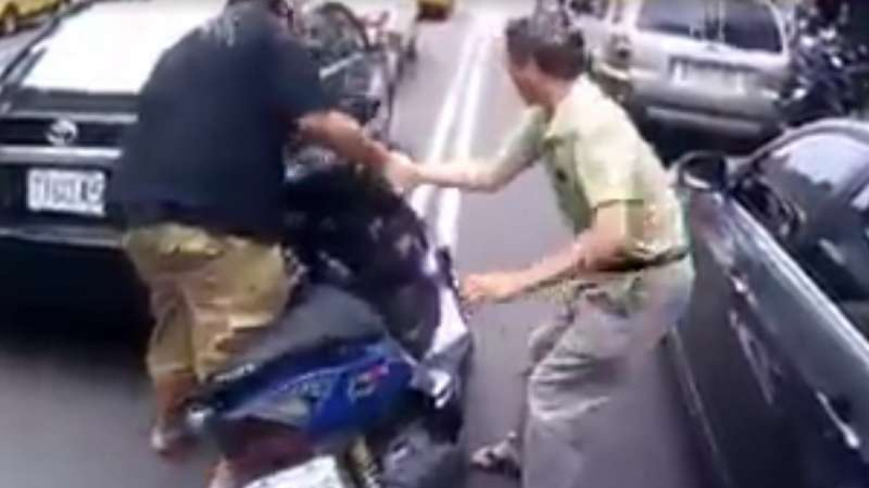 Pengemudi mobil itu juga berusaha membantu mendirikan motor yang jatuh ke aspal. Setelah motor berhasil berdiri, pengemudi mobil, kemudian berusaha menenangkan pengendara motor. Mungkin karena grogi, pengemudi mobil menaruh tangan kanannya di tuas gas.
