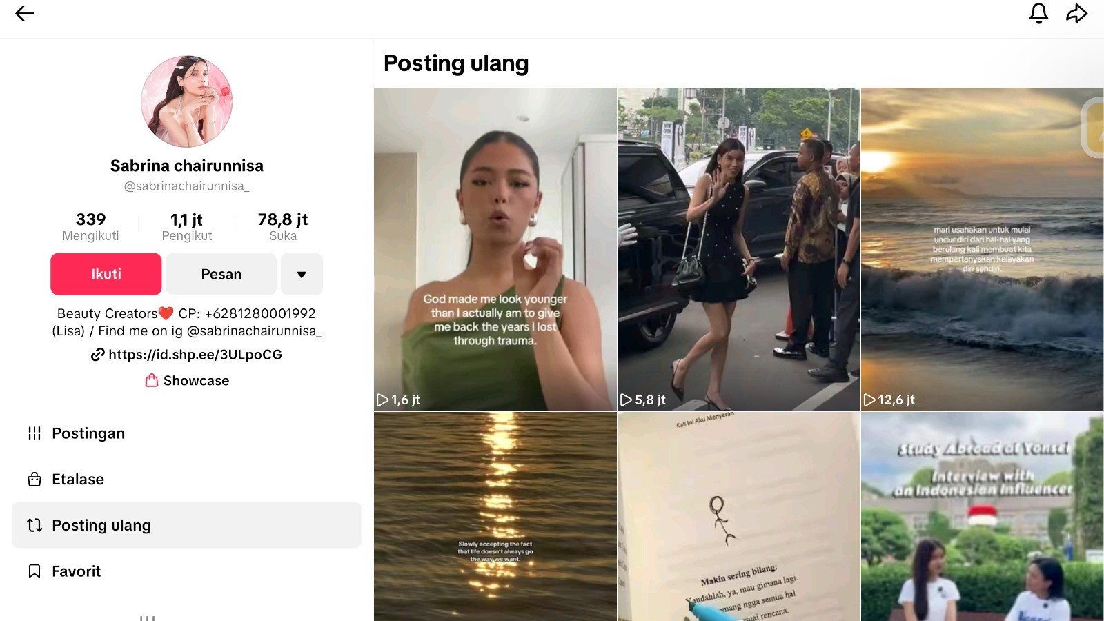 Sabrina Chairunnisa Posting Ulang Konten Galau, Lagi Ada Masalah Sama Pasangan?