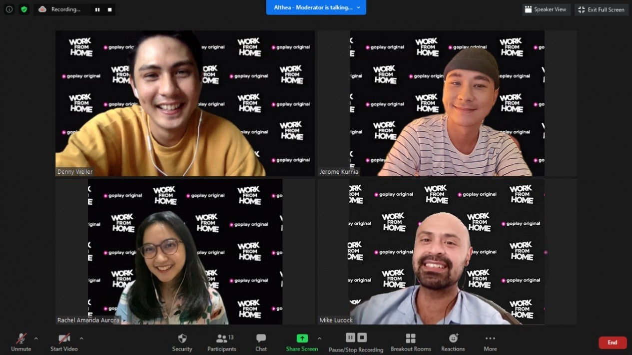 VIVA – Para pemain serial GoPlay Original, Work From Home, Rachel Amanda, Jerome Kurnia, Mike Lucock, dan Denny Weller menceritakan pengalaman unik mereka yang harus syuting tanpa lawan main.