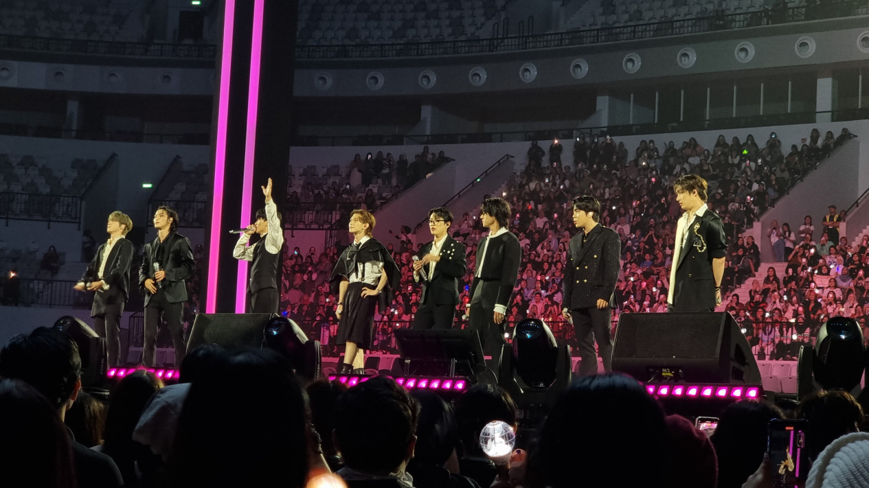 “Kami mendengar suara kalian di ruang ganti bernyanyi lagu kami. Saya jadi semanagat untuk bertemu kalian,” kata Seonghwa.