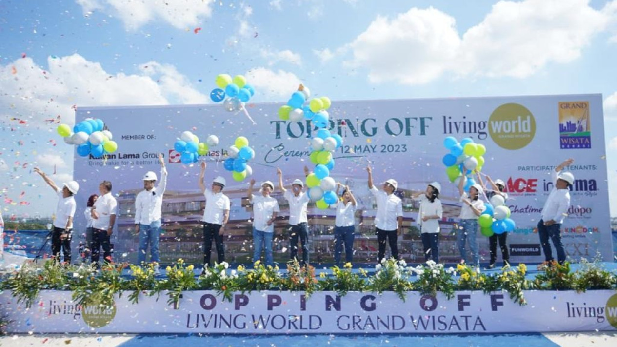 VIVA – PT Sahabat Duta Wisata selaku perusahaan joint venture antara Kawan Lama Group dan Sinar Mas Land sukses menyelenggarakan prosesi peletakan batu pertama (groundbreaking) untuk pengembangan Mall Living World di Grand Wisata Bekasi pada 30 September 2021 lalu. Saat ini, progres pengembangan mall tersebut telah memasuki proses penutupan atap atau yang sering disebut dengan topping off pada hari Jumat (12/5). Berdiri di atas lahan seluas + 4 hektare dengan luas bangunan mall, hotel dan area parkir mencapai 155.000 m2, proyek shopping center ini mengeluarkan total investasi hingga Rp1 triliun dan diperkirakan akan mulai beroperasi pada kuartal pertama 2024.