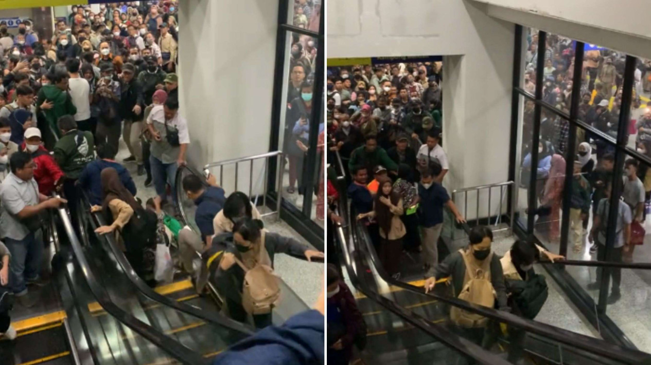 Jakarta – Beredar sebuah video yang memperlihatkan penumpang Commuter Line KRL panik karena dua eskalator di Stasiun Manggarai yang mati tiba-tiba menyala.